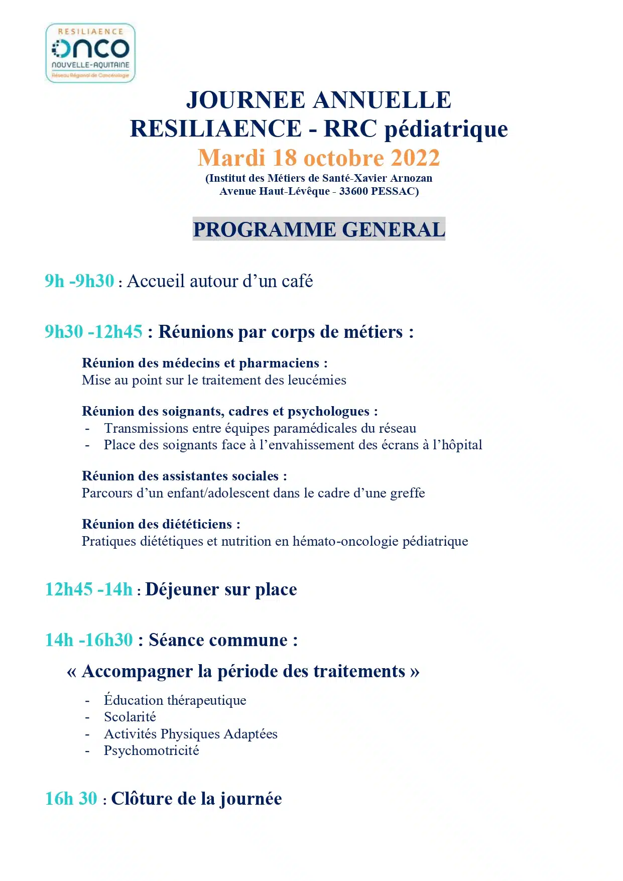 Le réseau RESILIAENCE, branche pédiatrique d’Onco-Nouvelle-Aquitaine, a organisé sa journée annuelle le mardi 18 octobre 2022.