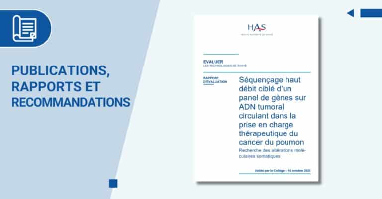 La HAS publie un rapport d’évaluation « Séquençage haut débit ciblé d’un panel de gènes sur ADN tumoral circulant dans la prise en charge thérapeutique du cancer du poumon »